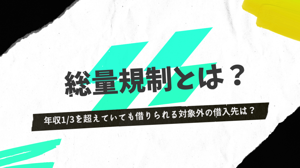 総量規制とは、年収の3分の1を超える借入れを制限する規定のことです。 総量規制の目的は、貸金業者による消費者への過剰な貸付けを抑制することにあります。しかし、制限以上のお金を必要としている方は、総量規制の対象外の借入れについて知りたいのでは... -