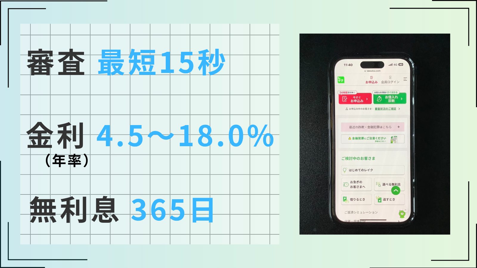 | 無利息 | 最大30日 | 実質年率 | 3.0~18.0% |