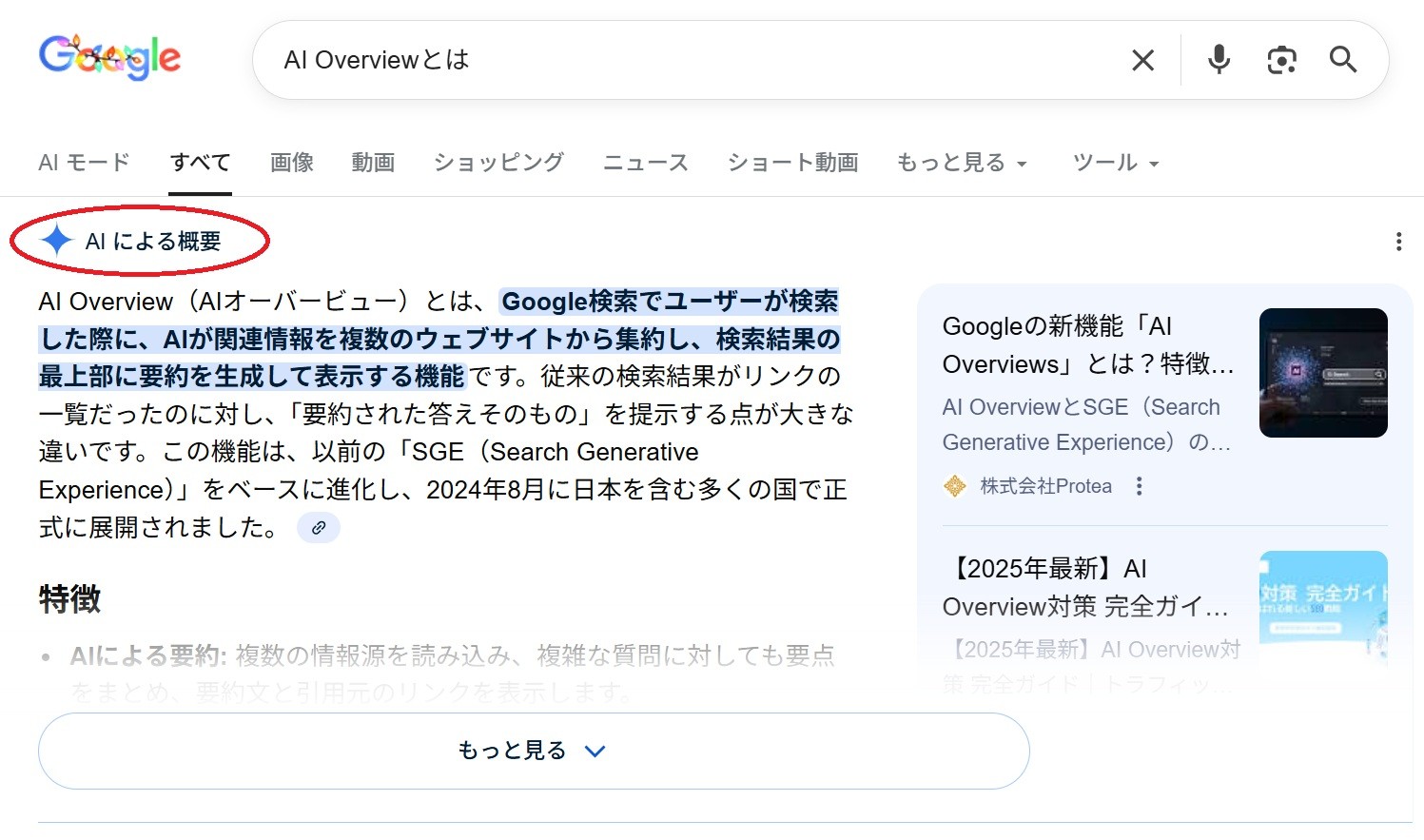 注記:AI Overviewsのアルゴリズムや形式は日々進化しています。常に最新の情報を確認するなど、柔軟な対応が必要です。