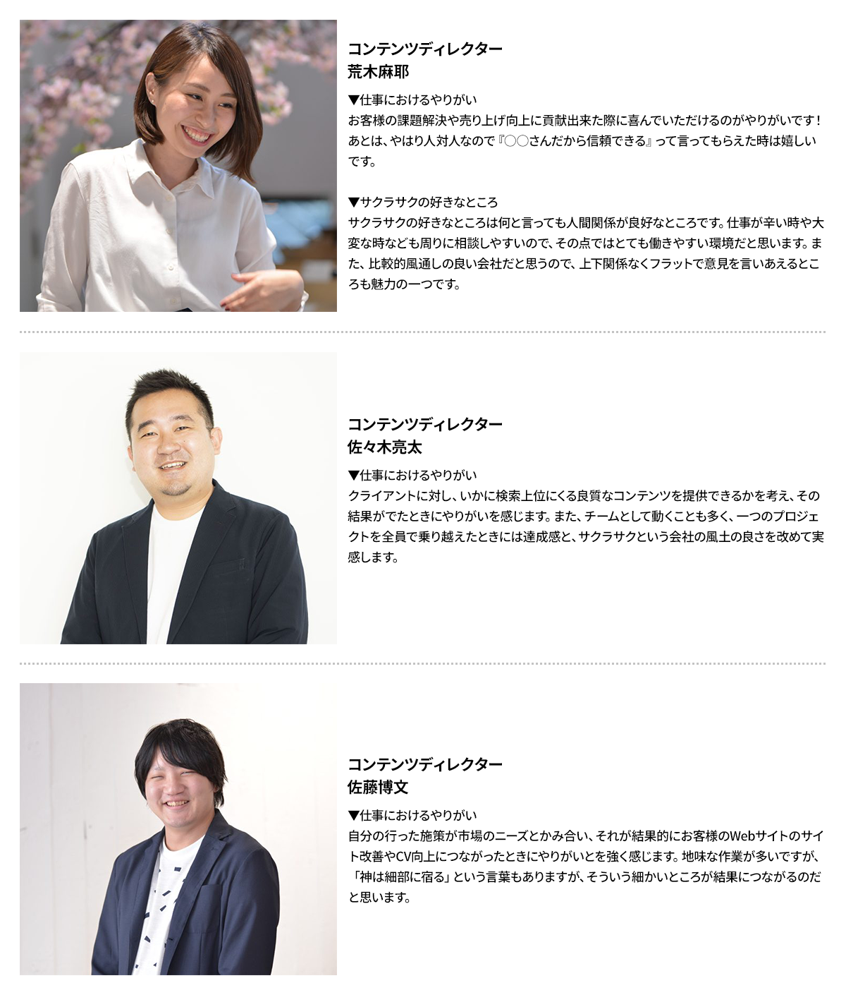 お客様の信頼を得るために、私たちが記事にどのように向き合い何を徹底しているのか、サクラサクの「モノづくり」を統括するプロダクト部門責任者である執行役員CTOの山崎がその詳細をご説明します。