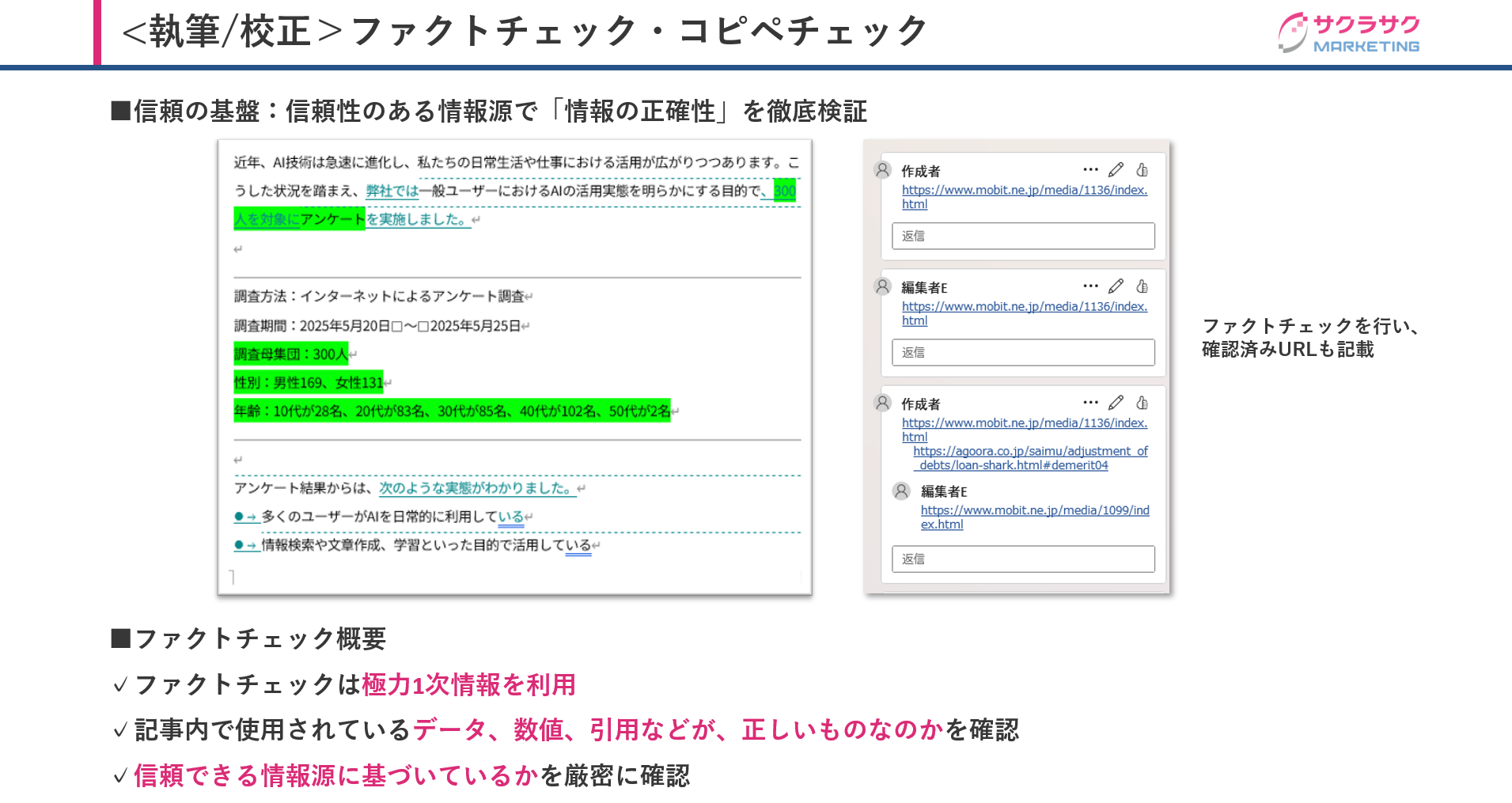 良いライターと継続的に関係を築き、ともに成長していく。その仕組みこそが、サクラサクのコンテンツ品質を支える源泉です。