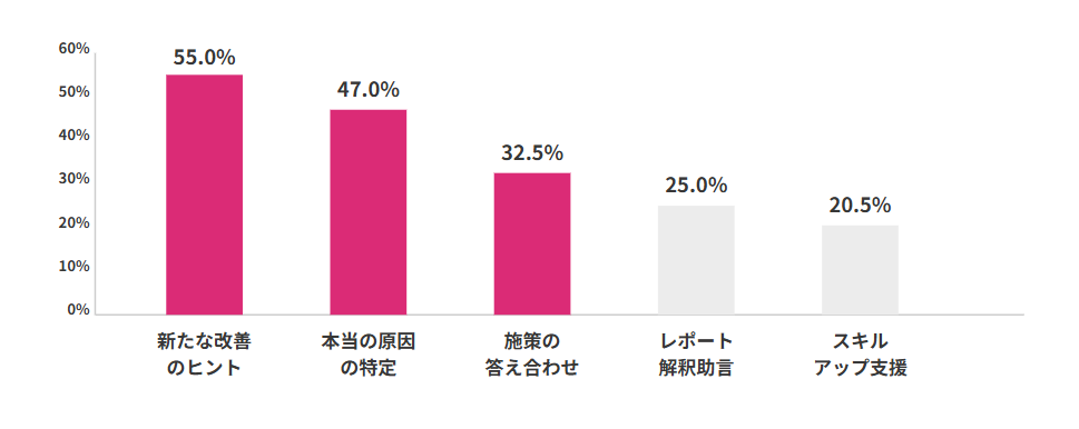 データの読み解き方や活用方法についてのアドバイスも求められています。 - 社内担当者がスキルアップできるような、専門的な知見を得たい(20.5%)