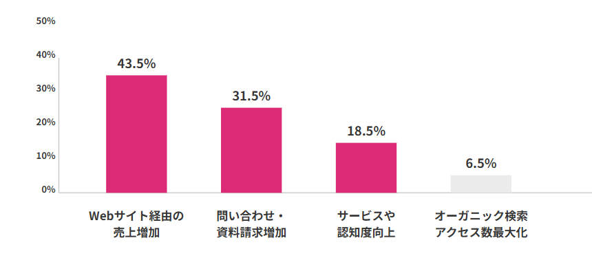 最後に、企業がSEO施策において最も重要視する成果を尋ねたところ、以下の結果となりました。