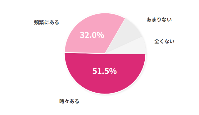 現在のSEO施策について「このままで本当に成果が出るのだろうか?」と将来に不安を感じるか尋ねたところ、「頻繁にある」が32%、「時々ある」が51.5%という結果でした。