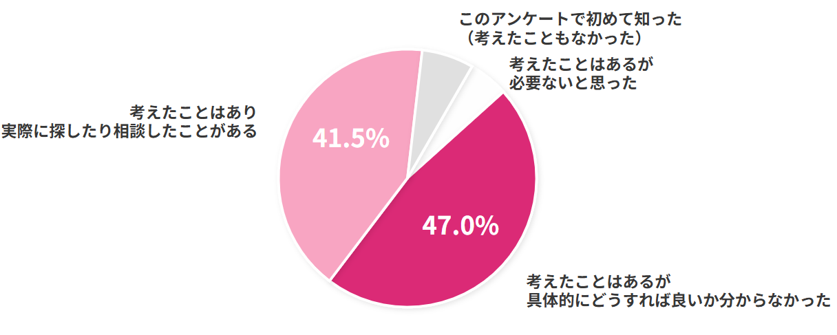 - 考えたことはあり、実際に探したり相談したことがある(41.5%)