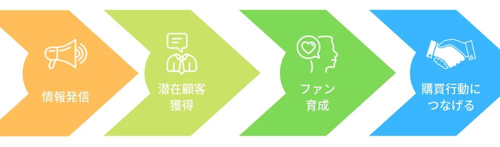 これは即座に買ってもらうことを期待するのではなく、段階的に関心を深めてもらい、長期的なスパンで購入に導く手法です。