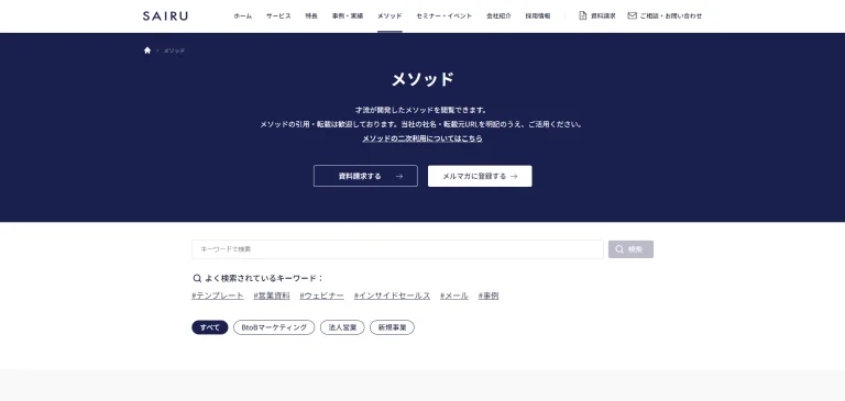 一般的には、メールアドレスなどの情報入力と引き換えに「役立つ資料」を配布しますが、『SAIRU メソッド』では全面的に公開(しかも無断転載を歓迎)しています。ここにも、情報の透明性に真摯に向き合う企業姿勢が窺えます。