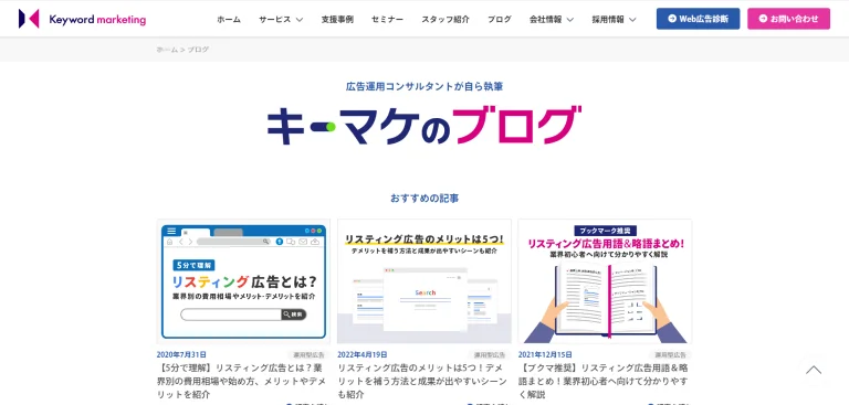 『キーワードマーケティングのブログ』は、株式会社キーワードマーケティングが運営するオウンドメディアです。BtoB向けの広告運用で蓄積してきた膨大な実績をもとに、企業のマーケティング担当者をターゲットとして、幅広い情報を発信しています。