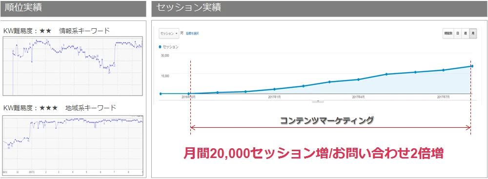 最後に、コンテンツマーケティングの効果について、弊社が手がけたコンテンツマーケティングの事例をご紹介します。