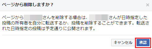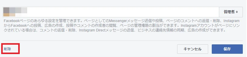 - 自分自身を「管理者」から削除する(上述の「Facebookで管理者を削除する手順」参照)